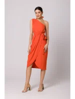 95% polyester 5% elastan 100% polyester Tyto krásné šaty na jedno rameno se zavinovacím vzorem s detailem zavazování a ozdobným řasením pozvednou váš příležitostný vzhled. PODROBNOSTI O PRODUKTU: tkaná látka na jedno rameno asymetrický výstřih elastický pas zavazování v pase částečně podšité délka pod kolena skrytý boční zip Naše modelka je vysoká 175 cm a nosí velikost S