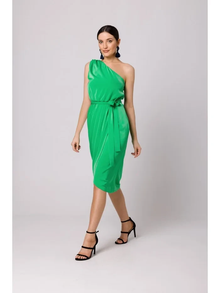K160 Šaty na jedno rameno - zelené