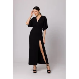 95% polyester 5% elastan Milujeme dlouhou siluetu, vysoký rozštěp na nohou a kimonový design těchto maxi šatů. PODROBNOSTI O PRODUKTU: maxi šaty z tkané látky s vysokým rozštěpem na nohou výstřih do V kimonový vršek krátké rukávy skrytý boční zip bez podšívky Naše modelka je vysoká 175 cm a nosí velikost S