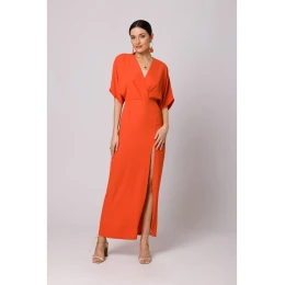 95% polyester 5% elastan Milujeme dlouhou siluetu, vysoký rozštěp na nohou a kimonový design těchto maxi šatů. PODROBNOSTI O PRODUKTU: maxi šaty z tkané látky s vysokým rozštěpem na nohou výstřih do V kimonový vršek krátké rukávy skrytý boční zip bez podšívky Naše modelka je vysoká 175 cm a nosí velikost S