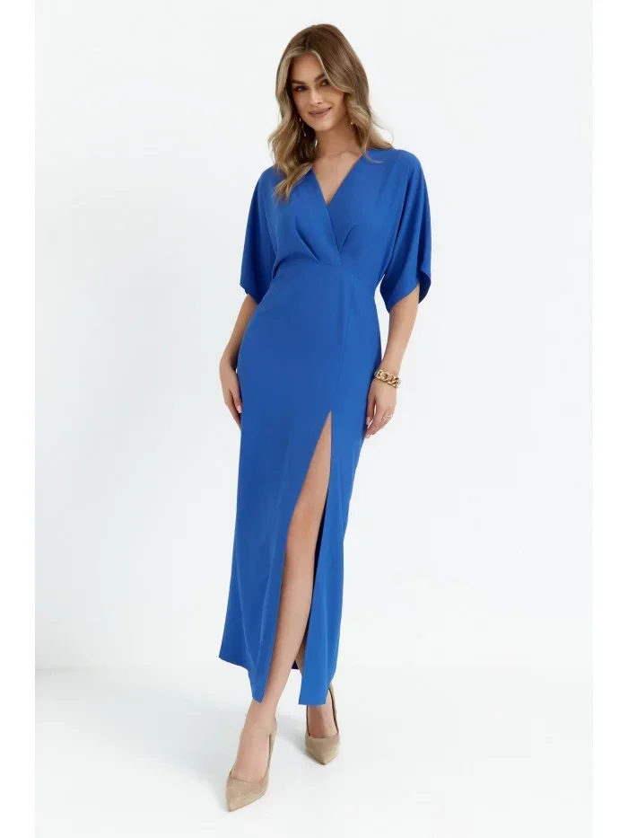 95% polyester 5% elastan Milujeme dlouhou siluetu, vysoký rozštěp na nohou a kimonový design těchto maxi šatů. PODROBNOSTI O PRODUKTU: maxi šaty z tkané látky s vysokým rozštěpem na nohou výstřih do V kimonový vršek krátké rukávy skrytý boční zip bez podšívky Naše modelka je vysoká 175 cm a nosí velikost S