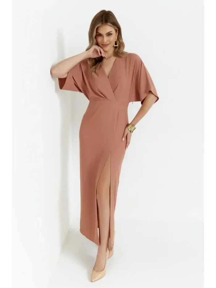 95% polyester 5% elastan Milujeme dlouhou siluetu, vysoký rozštěp na nohou a kimonový design těchto maxi šatů. PODROBNOSTI O PRODUKTU: maxi šaty z tkané látky s vysokým rozštěpem na nohou výstřih do V kimonový vršek krátké rukávy skrytý boční zip bez podšívky Naše modelka je vysoká 175 cm a nosí velikost S