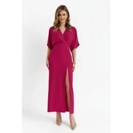 95% polyester 5% elastan Milujeme dlouhou siluetu, vysoký rozštěp na nohou a kimonový design těchto maxi šatů. PODROBNOSTI O PRODUKTU: maxi šaty z tkané látky s vysokým rozštěpem na nohou výstřih do V kimonový vršek krátké rukávy skrytý boční zip bez podšívky Naše modelka je vysoká 175 cm a nosí velikost S