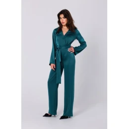 Zajímavý návrh letního overalu bez rukávů s otevřenými zády. Oblek zdobený krajkou. Ideální pro mnoho příležitostí.