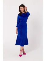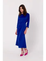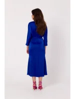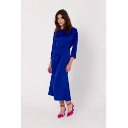 98 % polyester 2 % elastan DETAILY VÝROBKU: tkaný satén tříčtvrteční netopýří rukávy midi délka bateau výstřih tenký vázaný v pase skrytý zip na zádech bez podšívky Naše modelka je 168 cm vysoká a nosí velikost S Navrženo a vyrobeno v Polsku