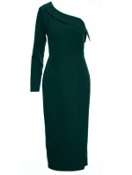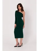Dámské šaty K146 na jedno rameno lahvově zelené - Makover