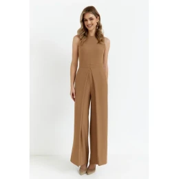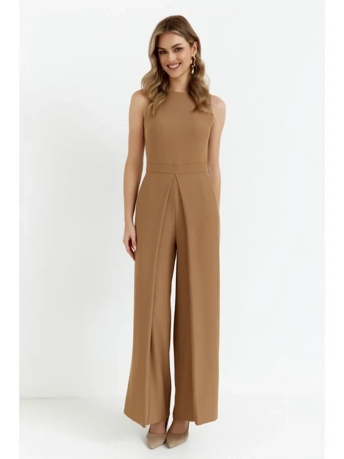 95% polyester 5% elastan DETAILY PRODUKTU: tkaný materiál jednodílný overal bez rukávů široké nohavice boční kapsy skrytý zip na zádech naše modelka měří 174 cm a nosí velikost S navrženo a vyrobeno v Polsku