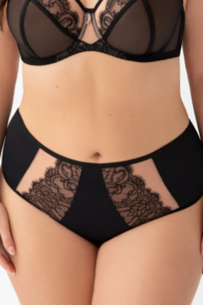 Přední díl: Přední část z mikrovlákna se stabilním tylem a stabilní krajkou, boky z mikrovlákna, nohavičky olemované úzkou pružnou páskou