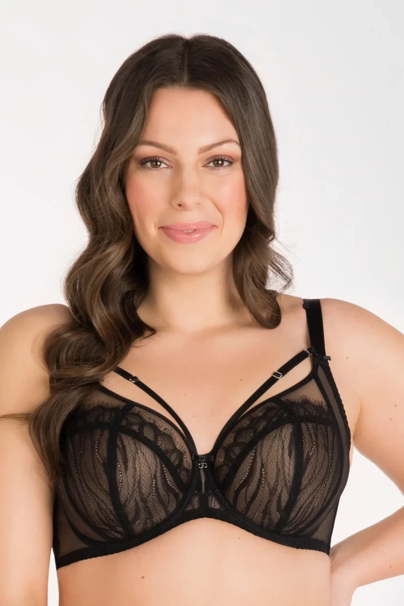 VÁZANÁ VELIKOST: tvarovaný můstek ze stabilního tylu a stabilní krajky; průhledná lycra se síťovanou strukturou pro velmi dobrou oporu; ploché velrybí kostice na bocích, aby podprsenka dokonale přilnula k tělu.