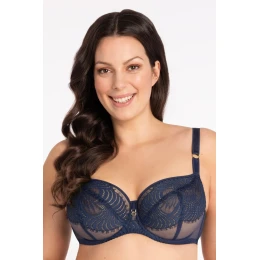 Biustonosz miękki przeznaczony dla kobiet ze średnim i dużym biustem.Zapewnia efekt uniesienia i zebrania biustu do środka,3-częściowe miski wykonane ze stabilnej koronki z rzęskami i tiulu stabilnego.Górna krawędź miski przechodzi płynnie do ramiączka powodując lepsze podtrzymanie biustu.Tył z transparentnej lycry zapewniającej bardzo dobre dopasowanie i podtrzymanie.Fiszbiny boczne zapobiegające zwijaniu się materiału.W zależności od rozmiaru dwu lub trzyrzędowa haftka z trójstopniową regulacją obwodu.Nieodpinane, re
