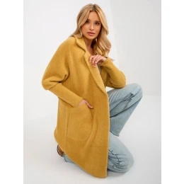 Hořčicový volný kabát z alpaky s kapsami .