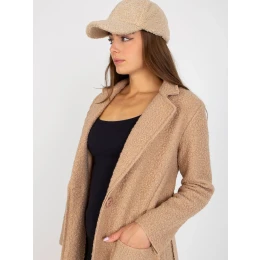 Béžový plyšový maxi kabát s páskem Merve OCH BELLA .