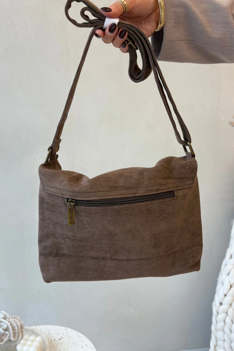 Kabelka Poštní Taška Z Eko Semiš Tmavě Béžová Carenza