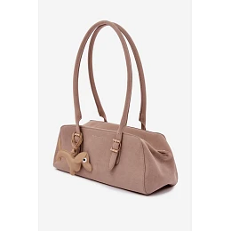 Kabelka z imitace semiše s přívěskem jezevčík béžová Noely