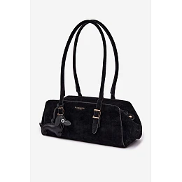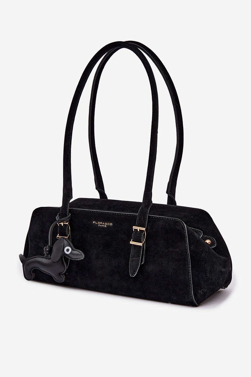 Kabelka z imitace semiše s přívěskem jezevčík černá Noely