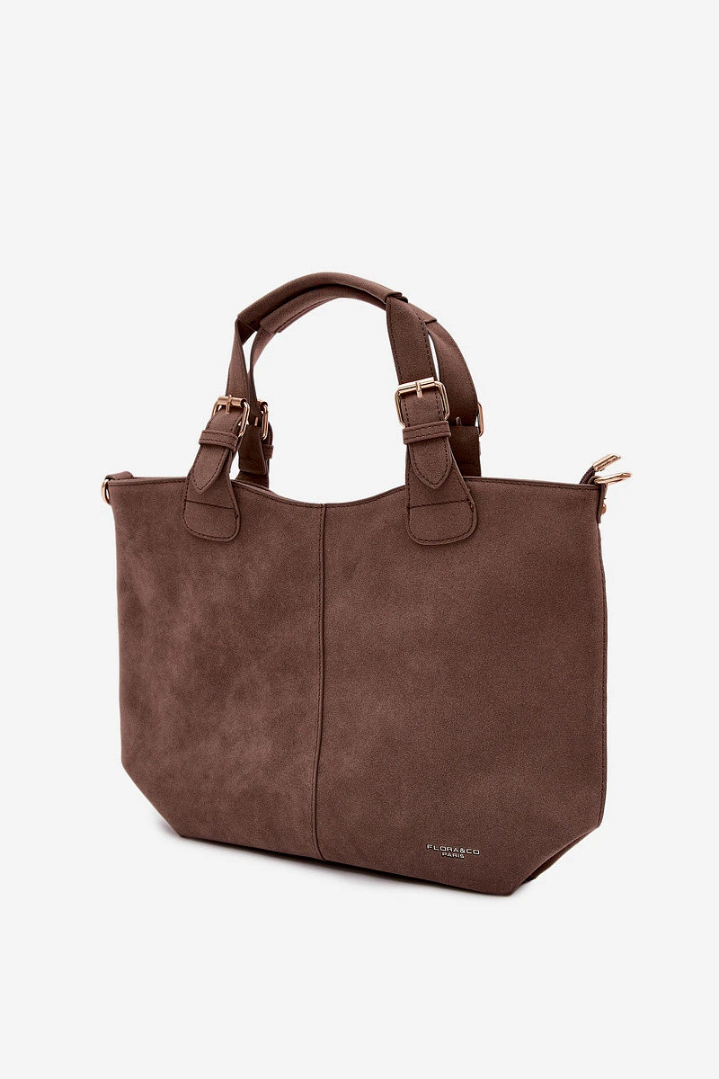 Klasická dámská kabelka vyrobená z imitace semiše je elegantní a univerzální doplněk, který se skvěle hodí jak na každodenní nošení, tak na formálnější příležitosti. Model je zapínán na zip, což zajišťuje bezpečí uložených věcí. Vnitřek kabelky je rozdělen na dvě přihrádky a vybaven praktickými kapsami, které usnadňují organizaci a pomáhají udržet pořádek. Kabelka má pohodlné držadla na nošení v ruce a odnímatelný pásek, díky kterému ji lze nosit i na rameni nebo přes rameno – podle potřeby. Šířka - 39 cm Výška - 25 cm Tloušťka - 11 cm