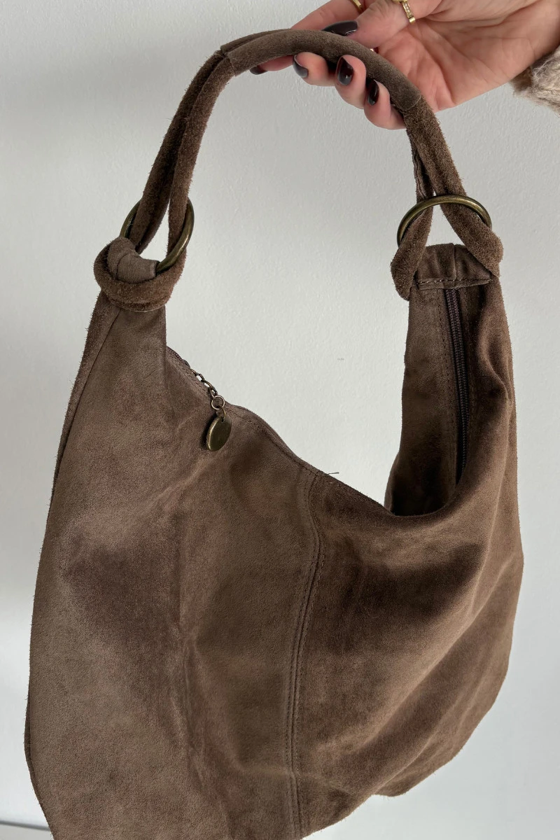 Kabelka z přírodního semiše tmavě béžová Floriah