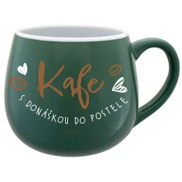 KAFE S DONÁŠKOU DO POSTELE - zelený keramický hrníček 300 ml