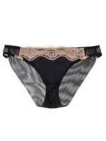 Kalhotky ze strečového saténu lemované krajkou v kontrastní byrvě: Bez zařezávacího efektu. S neprůhlednou dvouvrstvou síťovinou bez lemů na zadní straně.