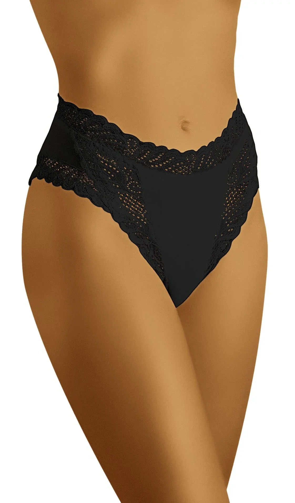 Elegantní kalhotky, které krásně zdobí boky. Vyrobené z měkké, hladké látky, která je na okrajích půvabně ovinuta jemnou, bohatou krajkou. Složení: 83 % polyamid, 17 % elastan.