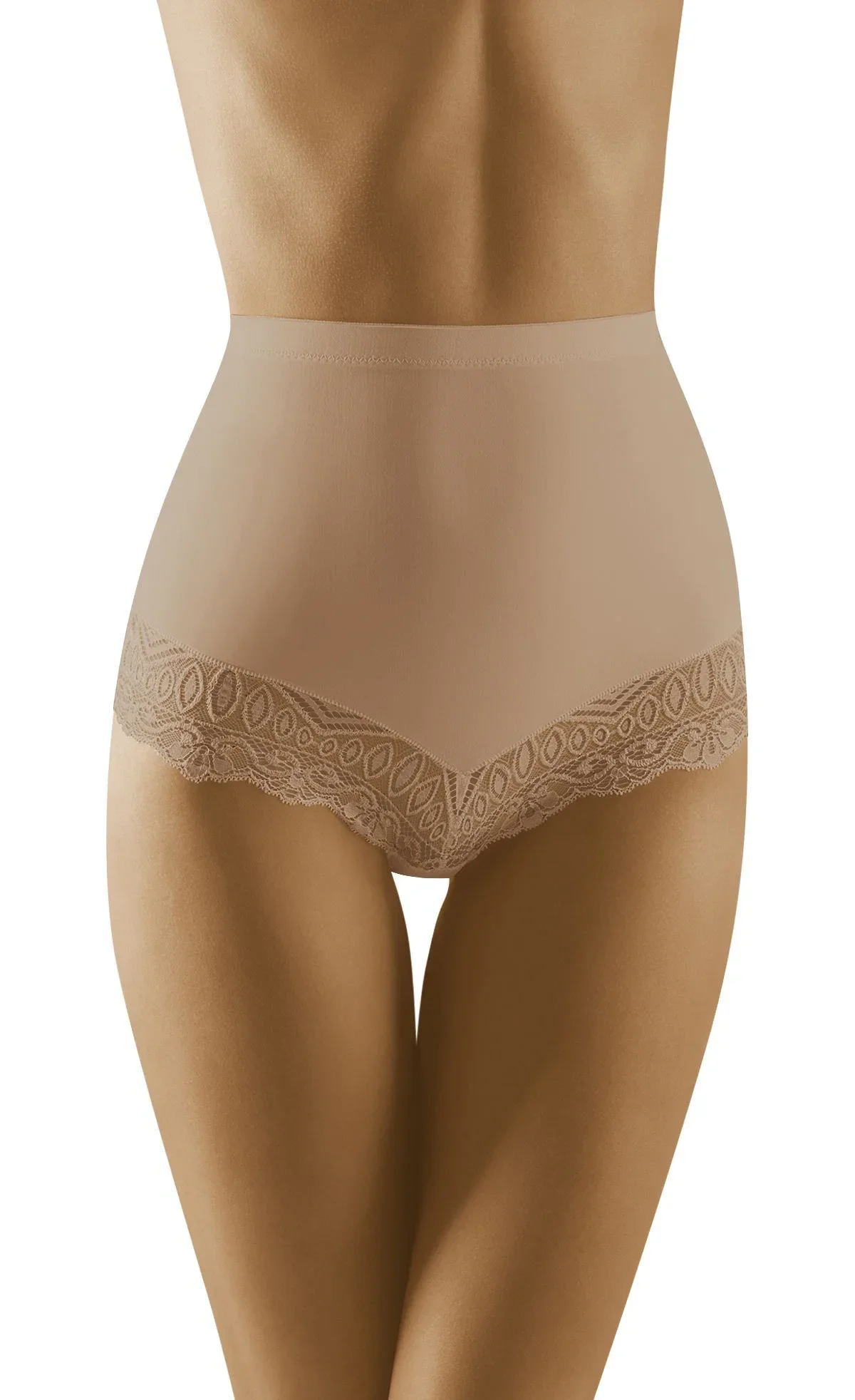 Vyšší spodní díl bikin jemně tvarující postavu, zdobený půvabnou krajkou podél linie stehen a hýždí. Jemně zplošťuje břicho a zlepšuje tak tělesné proporce. Složení: 58 % polyamid, 42 % elastan.