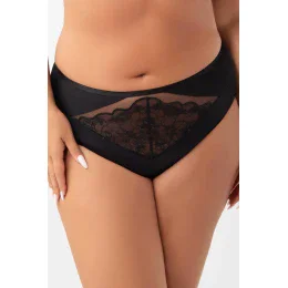 Wyższy stan. Zabudowany fason zasłaniający prawie całe pośladki. W Wykonane z kryjącej microfibry połączonej z tiulem elastycznym ze wstawkami z haftu na tiulu stabilnym. Tył wykończony poprzez podwinięcie krawędzi microfibry na płasko. Bawełniany kroczek.