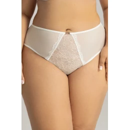 Odkryj elegancję i komfort w jednym – pełne figi w kolorze ecru to bielizna, która podkreśla kobiecość i zapewnia idealne dopasowanie. Przód majtek ozdobiony jest misterną, kwiatową koronką z delikatnym połyskiem i haftem, co nadaje całości wyjątkowego, luksusowego charakteru. Elastyczne boki i tył wykonane z miękkiej siateczki delikatnie opinają sylwetkę, zapewniając wygodę przez cały dzień. Subtelna kokardka z biżuteryjnym detalem dopełnia romantyczny styl. To idealna propozycja dla kobiet ceniących jakość i estetykę – bez kompromisów.