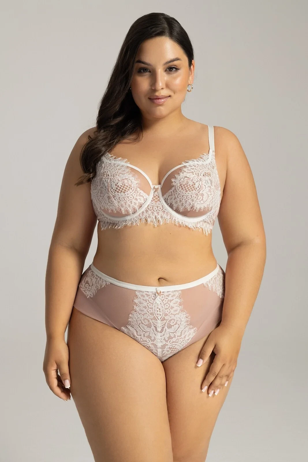 - z béžové síťoviny a ecru ažurové krajky