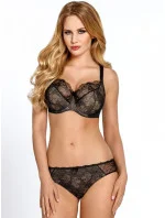 Vkusné černé bikiny, určené k podprsence 693, od výrobce Gaia. Vyznačují se lehkým, téměř ažurovým tvarem a půvabným béžovým zdobením, které je vidět na boku spodního prádla. Složení: 64 % polyamid, 16 % elastan, 15 % polyester, 5 % bavlna.