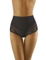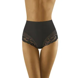 Bavlněné kalhotky vyššího střihu, zdobené krajkou a zajímavými, průhlednými tylovými pruhy na stehnech. Tyto dva vzory v kombinaci s příjemnou, hladkou látkou vytvářejí originální aranžmá, díky němuž boky vypadají elegantně a tvarovaně. Střih jemně tvaruje bříško. 72 % bavlna, 28 % elastan.