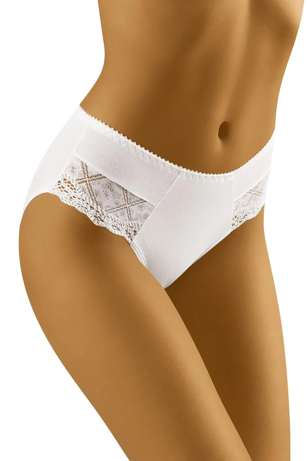 Klasické kalhotky v nadčasovém střihu, vyrobené z kvalitní bavlny, která umožňuje pokožce dýchat a dokonale se přizpůsobí tvaru těla. Mírně plnější střih dokonale zakryje nedokonalosti těla a vytvaruje zadeček. Hladké, na bocích zdobené průhlednou krajkou. Velmi ženské, nepostradatelné v šatníku každé ženy!
