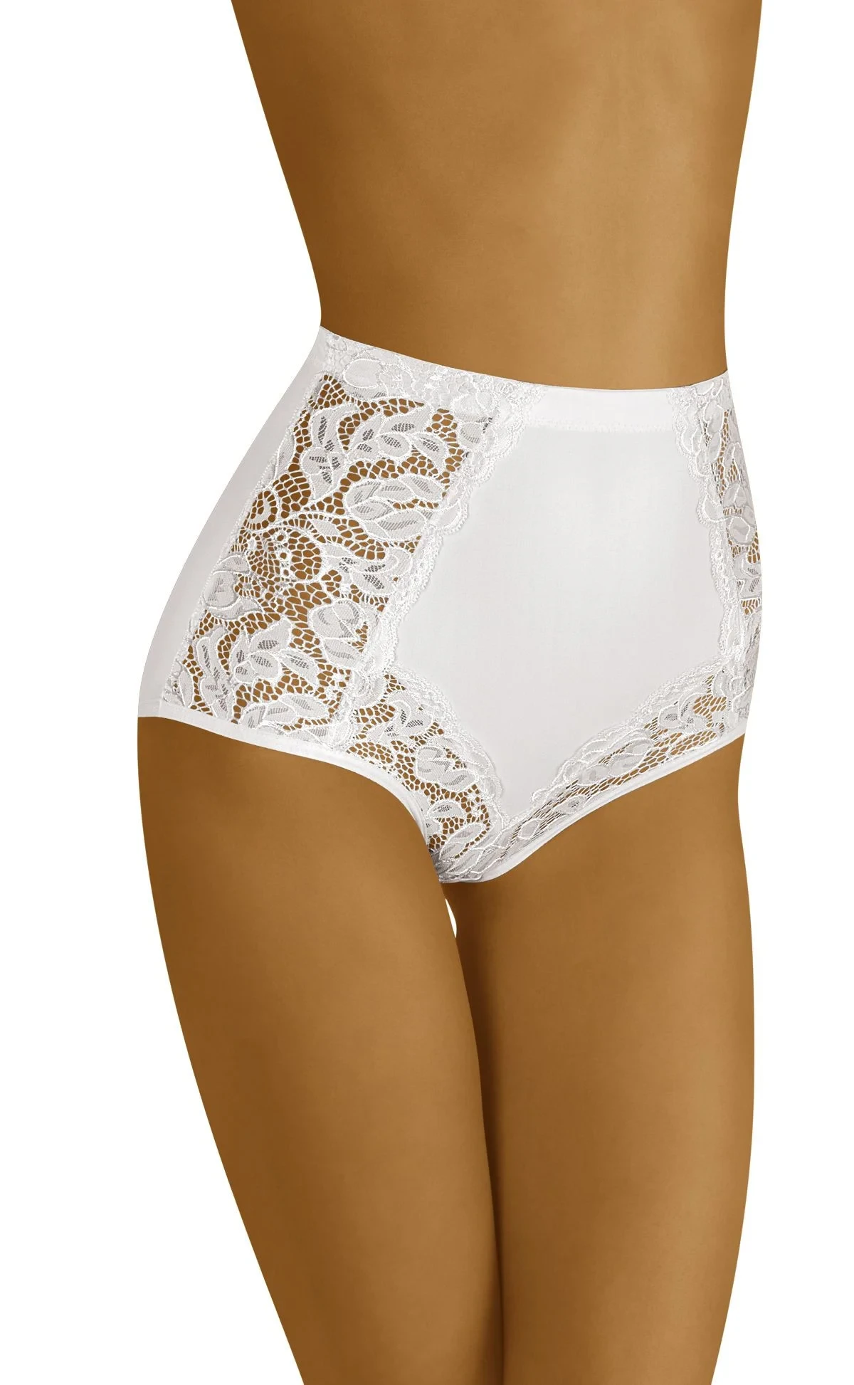 Vyšší, tvarující pas a boky - Eleganta je spodní prádlo, které chceme doporučit. Je vyrobeno z příjemného úpletu, s vložkami z krásné ažurové krajky, vypadá krásně a bezvadně. Pas má z vnitřní strany silikonovou vložku. Složení: 59 % polyamid, 41 % elastan.