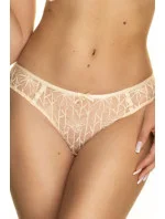 Figi Konrad Emma w kolorze jasnego beżu to doskonała propozycja dla kobiet ceniących wygodę, subtelność i elegancję. Wykonane z delikatnej, transparentnej siateczki ozdobionej finezyjnym haftem o kwiatowym motywie, pięknie podkreślają sylwetkę i prezentują się niezwykle lekko. Przód fig zdobi mała kokardka i złote serduszko, które dodają całości dziewczęcego uroku. Tył uszyty z transparentnego materiału zapewnia zmysłowy wygląd i wygodę noszenia. Jasnobeżowy odcień idealnie stapia się z kolorem skóry, czyniąc bieliznę niewidoczną pod jasnymi stylizacjami. Figi Emma najlepiej prezentują się w komplecie z dopasowanym biustonoszem z tej samej kolekcji.
