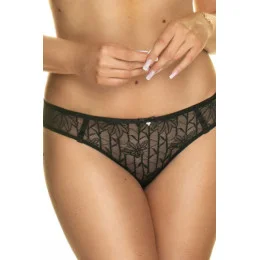 Figi Konrad Emma w kolorze czarnym to kwintesencja elegancji i subtelnego seksapilu. Wykonane z delikatnej, transparentnej siateczki zdobionej haftem o roślinnym wzorze, pięknie podkreślają kobiecą sylwetkę. Przód majtek przyciąga wzrok wyjątkowym haftem oraz drobnym, złotym akcentem w postaci serduszka, który dodaje całości uroku. Tył fig również wykonany z przejrzystego materiału subtelnie eksponuje pośladki, zapewniając przy tym pełen komfort noszenia. Elastyczne wykończenia i starannie dopracowany krój sprawiają, że figi Emma idealnie dopasowują się do ciała. To doskonała propozycja na co dzień i na wyjątkowe okazje – szczególnie w zestawie z biustonoszem z tej samej kolekcji.