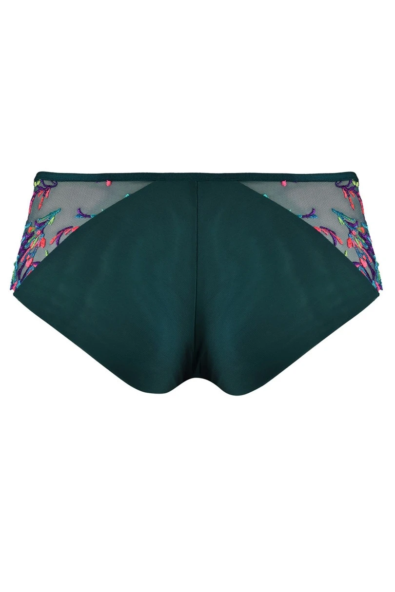 Figi Illusion 19233 Mediolano to klasyczna elegancja w nowoczesnym, zmysłowym wydaniu. Wykonane z lekkiej, transparentnej siateczki, subtelnie otulają sylwetkę, zapewniając komfort i perfekcyjne dopasowanie. Przód zdobi efektowny, kolorowy haft osadzony na beżowym tle, który tworzy harmonijną kompozycję z resztą materiału w odcieniu głębokiego granatu. Klasyczny krój fig sprawia, że są one nie tylko wygodne, ale również pięknie podkreślają biodra. Dodatek bawełny wewnątrz zapewnia higienę i miękkość noszenia. Figi Illusion to idealny wybór na co dzień i na wyjątkowe okazje – kobiece, lekkie i z charakterem.