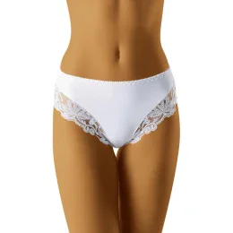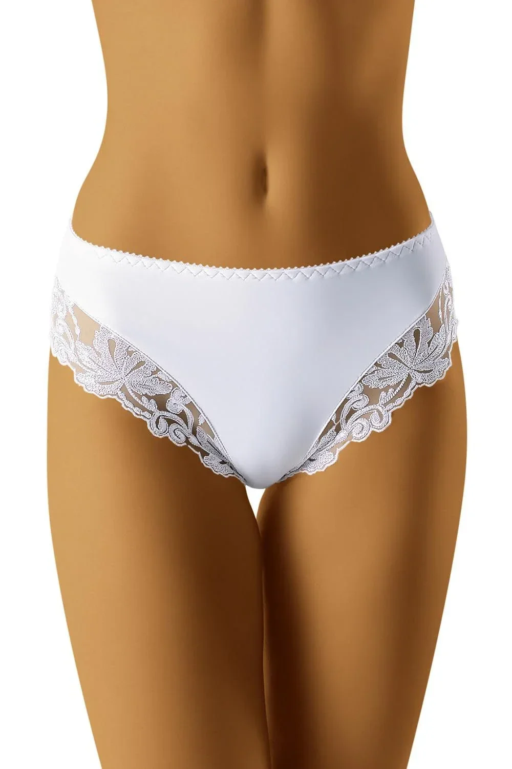 Velké, inspirující listy smyslně vyšité na jemném, lehce průsvitném tylu jsou tím, co se zde stává svůdnou předností vytvářející kreaci neobyčejného půvabu a ženskosti. Jemné jako první paprsky ranního slunce, vzory zde dokonale ladí s hladkou a pružnou přírodní látkou tvořící přední i zadní stranu celé kompozice.
