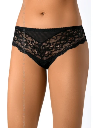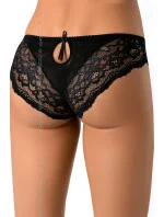 Sexy černé kalhotky Zaina V-7603 jsou nezbytným doplňkem k podprsence V-7601. Jsou vyrobené z jemné krajky s trojúhelníkovými tylovými vsadkami. Střih kalhotek je velmi smyslný a svůdný. Dokonale zvýrazňují oblost vašich boků. Jemný výřez na zádech s malou mašličkou dodává šatům koketní nádech.