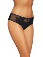Fenomenální kalhotky, vzadu hladké a vpředu půvabně krajkové. Síťovaná krajka doplněná krásnou květinovou výšivkou viditelnou blíže ke středu prádla, s jemným průsvitným efektem. Malá mašlička nahoře.