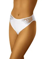 Klasické, velmi ženské kalhotky s prolamovaným zdobením na bocích. Vyrobeno z pružného, odolného úpletu, který se dokonale přizpůsobí tvaru těla.