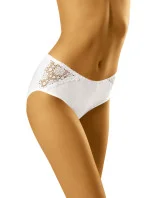 Vyšší klasické kalhotky, které mírně tvarují linii boků. Vyrobeno z vysoce kvalitního bavlněného úpletu. Boky zdobí květinové krajkové vsadky.