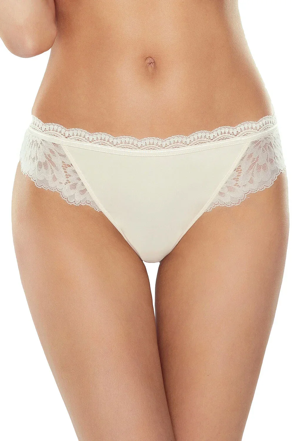 Elegantní a smyslné kalhotky ve stylu podprsenky. Přední strana z mikrovlákna. Vnitřní pas s jemnou gumičkou. Horní část je zakončena úzkou jemnou krajkou. Celek je obohacen lesklou elastickou stuhou, která dotváří tento jedinečný design. Zadní díl je vyroben z krajky s moderním květinovým motivem, který zdůrazňuje ženské tvary. Ideální pro ženy, které hledají výrazný a pohodlný střih. Pohodlí zvyšuje vložka ze 100% bavlny v rozkroku. Kalhotky balené jednotlivě v elegantní krabičce ve tvaru zásuvky se saténovou stuhou.