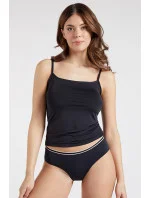 Kalhotky klasického střihu z hladkého mikrovlákna. Okraje jsou řezané laserem, díky čemuž se kalhotky nerýsují pod oblečením. Ozdobné pruhy v kontrastní barvě v pase.