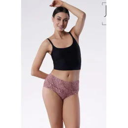 Dámské kalhotky s vysokým pasem jsou ideálním modelem pro každodenní nošení. Jedná se o pohodlné kalhotky plného střihu s vyšším horním dílem, které vyhovují každému typu postavy. Zdůrazňují tvar boků a dobře se nosí, zatímco vyšší horní díl mírně vyhlazuje spodní část břicha. Dámské kalhotky Wings Maxi byly vytvořeny pomocí bezešvé technologie Julimex Invisible Line. Jsou vyrobeny z měkkého a na dotek jemného úpletu a navíc mají hygienickou bavlněnou vložku pro maximální pohodlí.