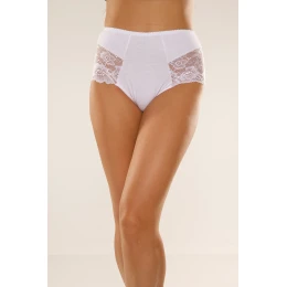 Klasické dámské kalhotky ušité z vysoce kvalitní bavlny a elastanu. Kalhotky jsou mírně vyšší, což umožňuje zakrýt drobné nedokonalosti siluety. Boky zdobí krajkové vsadky.