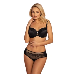 Elegantní kalhotky plného střihu. Přední díl je vyroben z výšivky na síťovině a vzorované saténové látky. Zadní díl je vyroben z lesklé pleteniny.