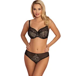 Elegantní kalhotky plného střihu. Přední díl je vyroben z krajky a síťoviny, zadní díl je z hladkého úpletu.