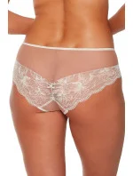 Klasické kalhotky typu figi jsou kombinací nadčasového střihu a elegance, vyrobené z měkké, prodyšné látky, která poskytuje pohodlí po celý den. Zadní strana kalhotek je jemně průhledná, což jim dodává smyslné kouzlo. Síťové ozdoby a jemná krajka zdůrazňují jejich elegantní charakter. V pase je jemná guma, která účinně udržuje kalhotky na místě, zajišťující dokonalé přizpůsobení. Uvnitř se nachází bavlněná vložka, která dbá o hygienu a pohodlí. Polský výrobek, balený v elegantní krabičce, se skvěle hodí jako luxusní doplněk každého šatníku.