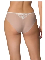 Figi Frances v barvě béžového mléka jsou elegantní model, který kombinuje pohodlí s rafinovaným stylem. Přední část kalhotek zdobí jemná krajková ozdoba, která dodává celku smyslný šarm a jemnost. Vyrobené z měkkého, příjemného kůže přátelského materiálu, figi perfektně přiléhají k tělu, zajistí plný komfort nošení po celý den. Na zádech je ozdobné krajkové zpracování, které figám dodává ženský charakter a dělá je výjimečnými. Figi Frances jsou ideálním doplňkem k celému prádlu, které nabízí jak eleganci, tak pohodlí.