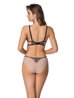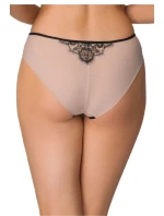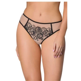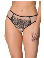 Překládám... Svůdné figy Frances v barvě béžově-černé. Jsou vyrobeny z krásné krajky a elastického tylu. Zadní část je vyrobena z dvojitého elastického tylu. Pás zdobený mašlí. Bavlněný klín.