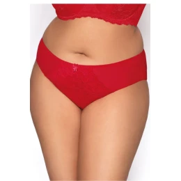 Úžasné a neuvěřitelně lákavé figy Carmela Big. Klasický střih, lehce zvýšený pas a skvělé kombinace zajímavých látek v barvě šťavnaté červené. Jemná, lehká elastická síťka po stranách s krajkou v centrální části fig. Vzdušná krajková ozdoba jemně obklopuje hýždě a stehna, vytvářející linie nohaviček. Celkově vytváří sexy spodní prádlo, ve kterém se každá žena bude cítit výjimečně.